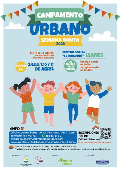 La información sobre el Campamento Urbano Semana Santa 2023 está disponible en la página web del Ayuntamiento de Llanes: www.ayuntamientodellanes.com/campamentos-urbanos
