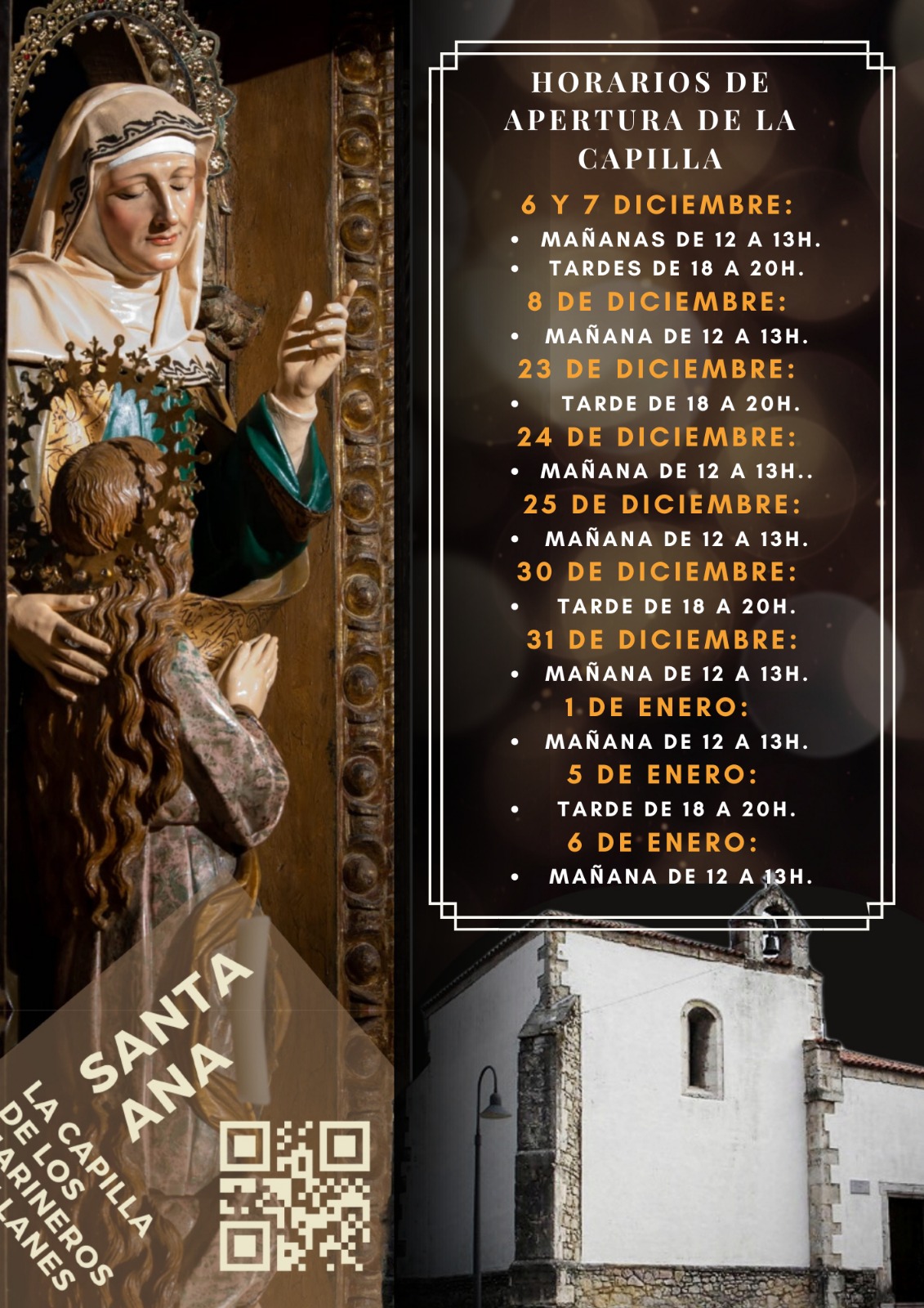 El horario de puertas abiertas de la capilla es: