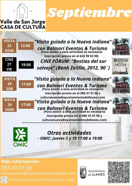 De la mano de Mónica Balmori conoceremos Nueva de Llanes de una manera diferente a través de su patrimonio arquitectónico indiano, con el añadido de poder disfrutar con las paradas teatrales, a cargo de Ana Morán y David Varela, en distintos puntos de la localidad que permitirán al visitante sumergirse en la época en la que tantos nuevenses hicieron "las américas", contribuyendo a hacer el recorrido aún más ameno.