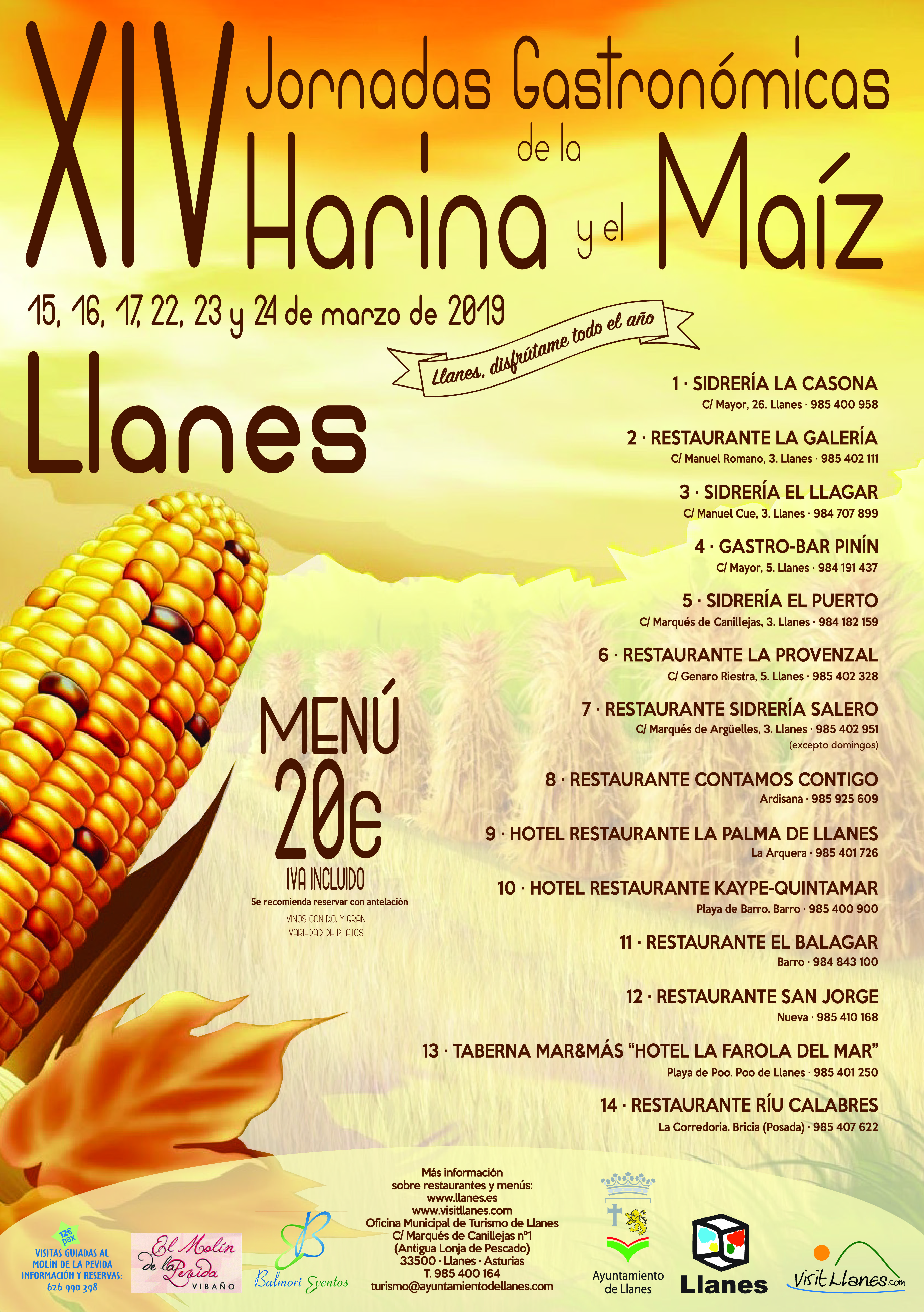 Las XIV Jornadas Gastronómicas de la Harina y el Maíz están organizadas por el Ayuntamiento de Llanes, con la colaboración de la Asociación Llanisca de Restaurantes (Allares).