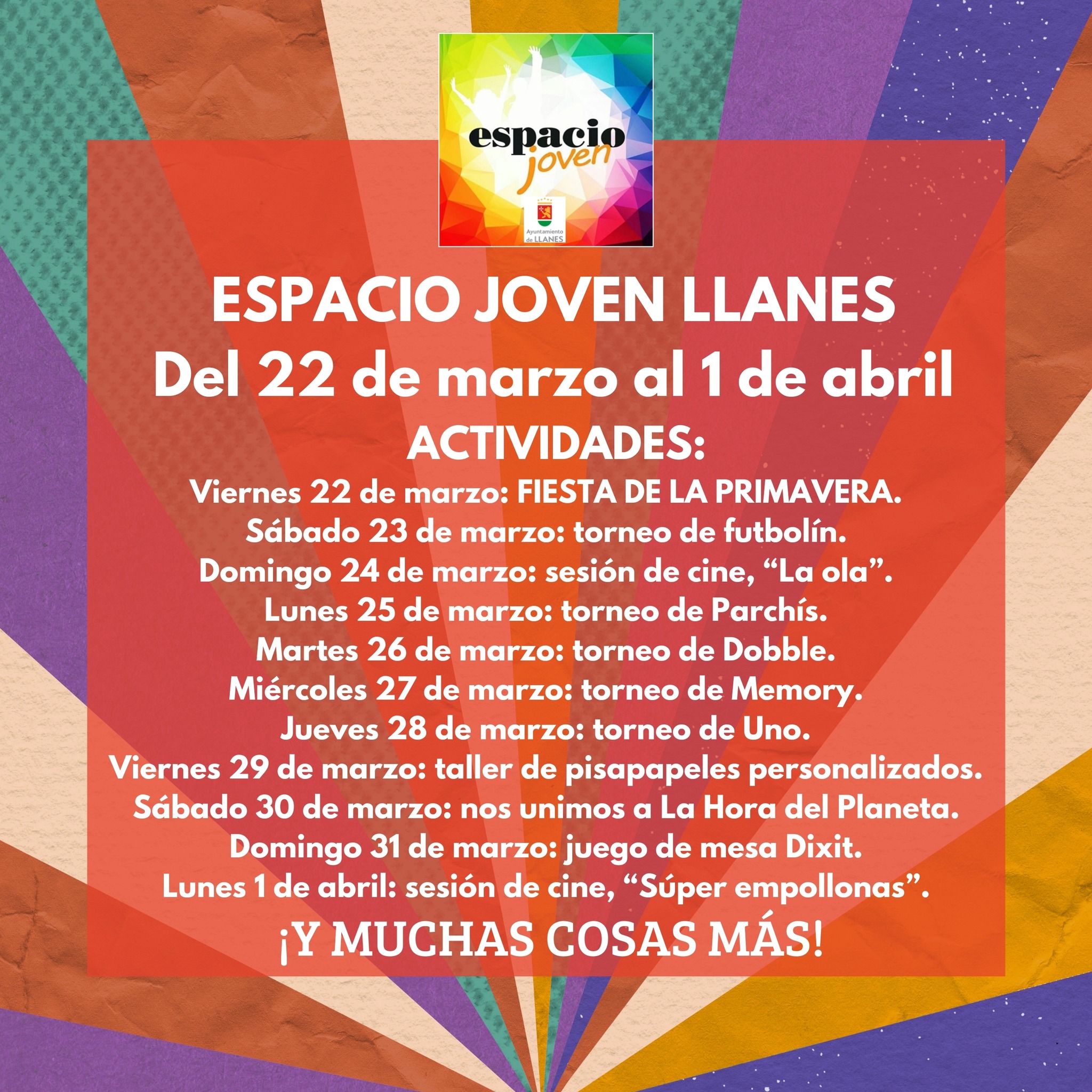 En Semana Santa el Espacio Joven Llanes abre sus puertas todos los días, desde el viernes 22 de marzo al lunes 1 de abril.