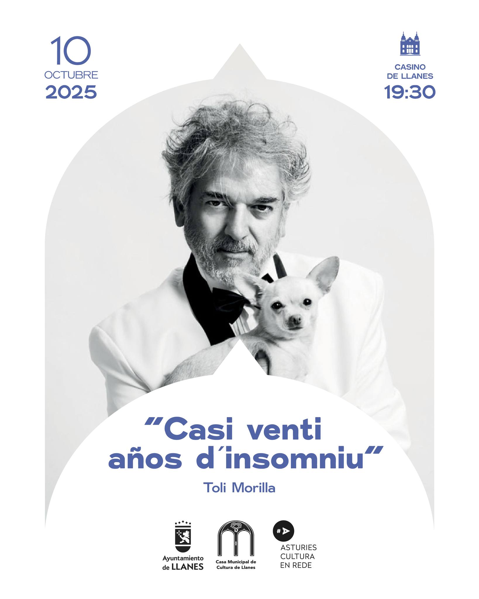 El viernes 10 de octubre, a las 19:30 h., en el Casino de Llanes, concierto "Casi venti años d´insomniu" por Toli Morilla.
