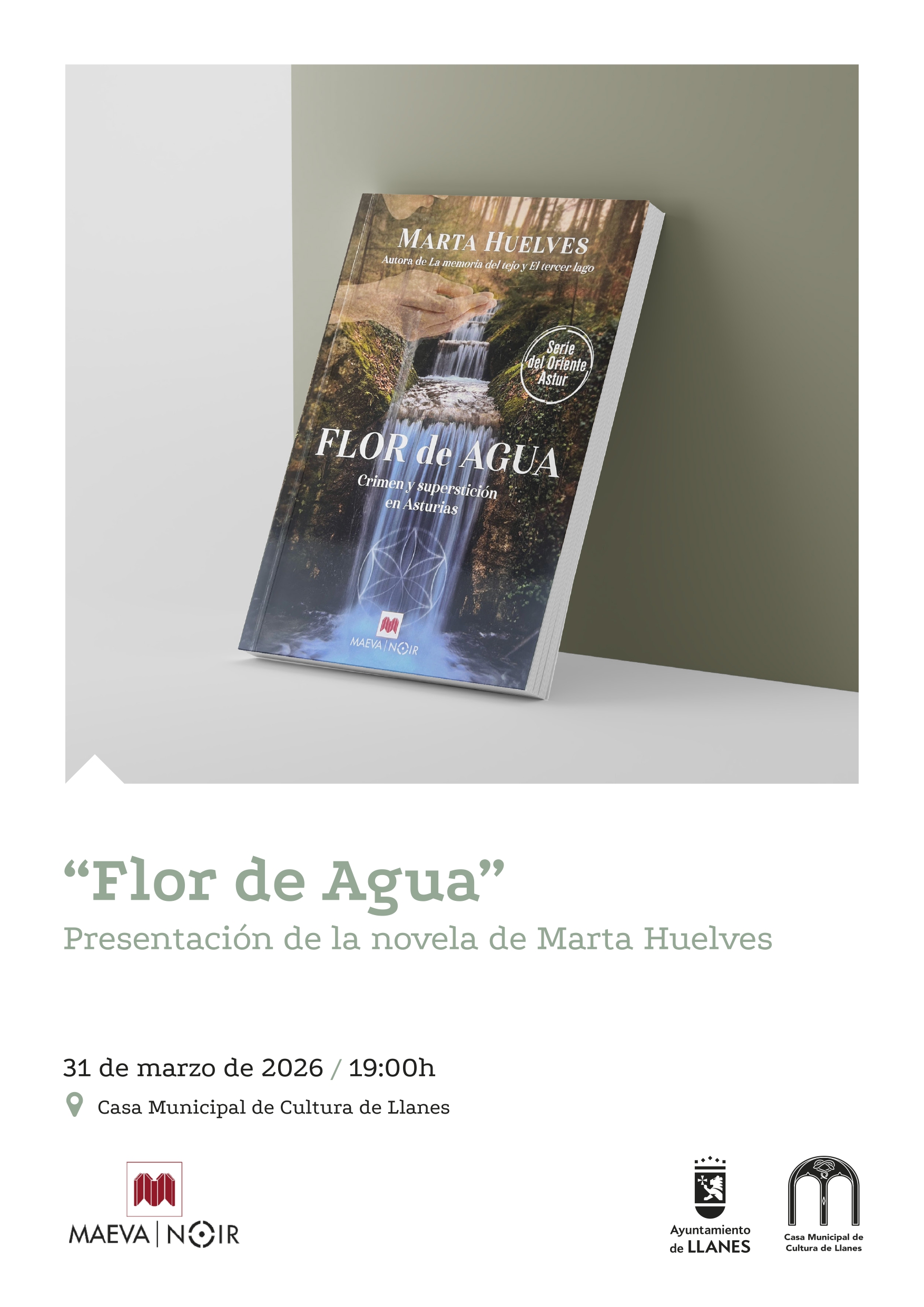 El martes 31 de marzo, a las 19:00 h. en la Casa de Cultura de Llanes, tendrá lugar la presentación de la novela “FLOR DE AGUA” de Marta Huelves.