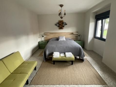 En el salón se encuentra un cómodo cheslong con posibilidad de convertirse en una grande y cómoda cama.