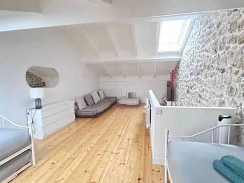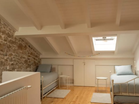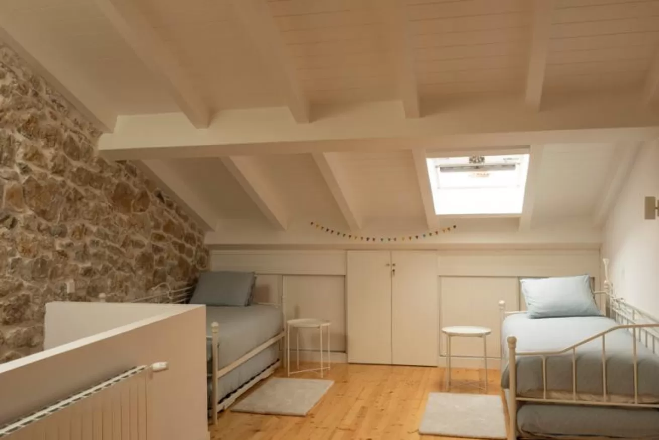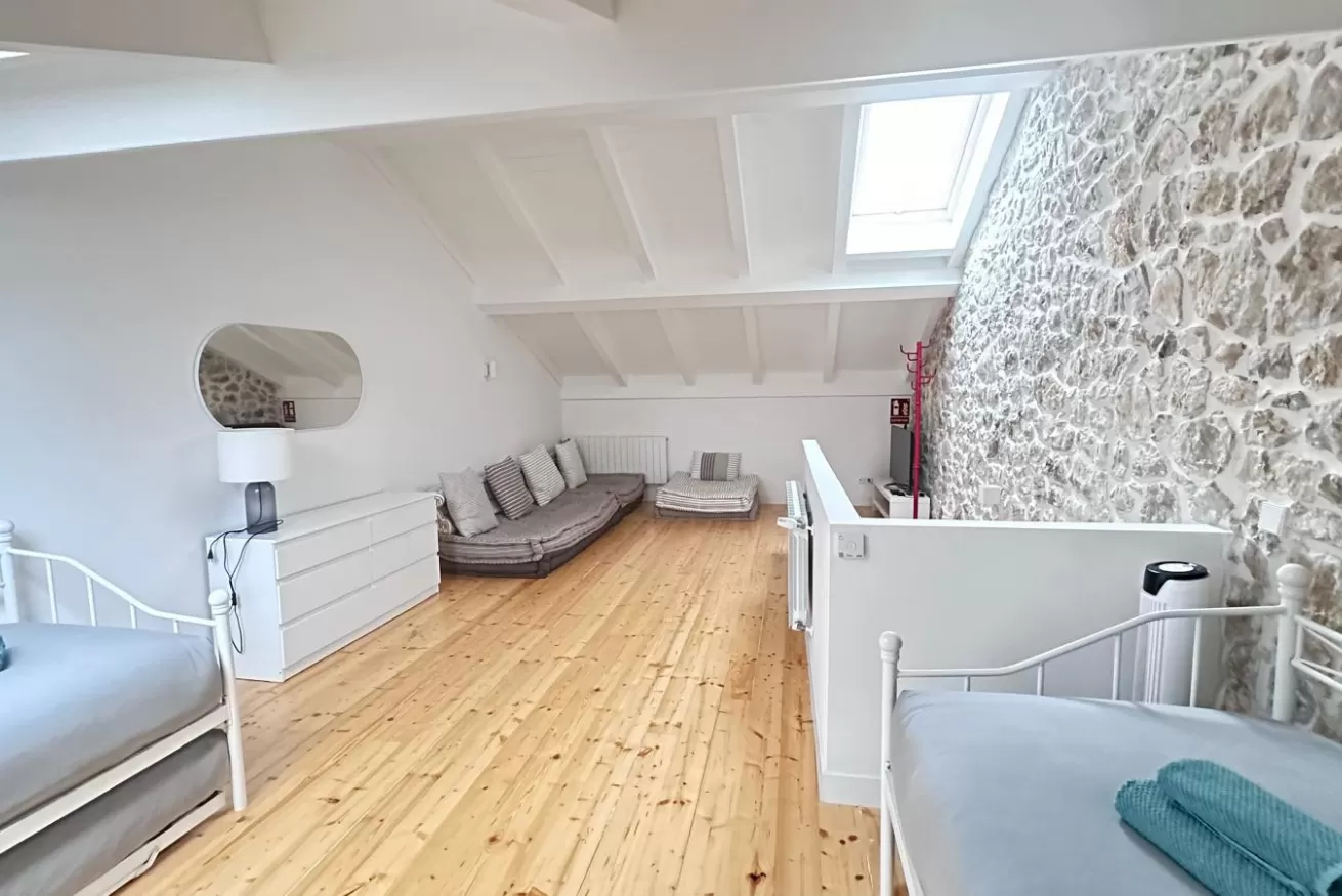 En la planta bajocubierta, otro cuarto doble que ocupa toda la planta con dos camas individuales y sofás con TV a modo de salón.