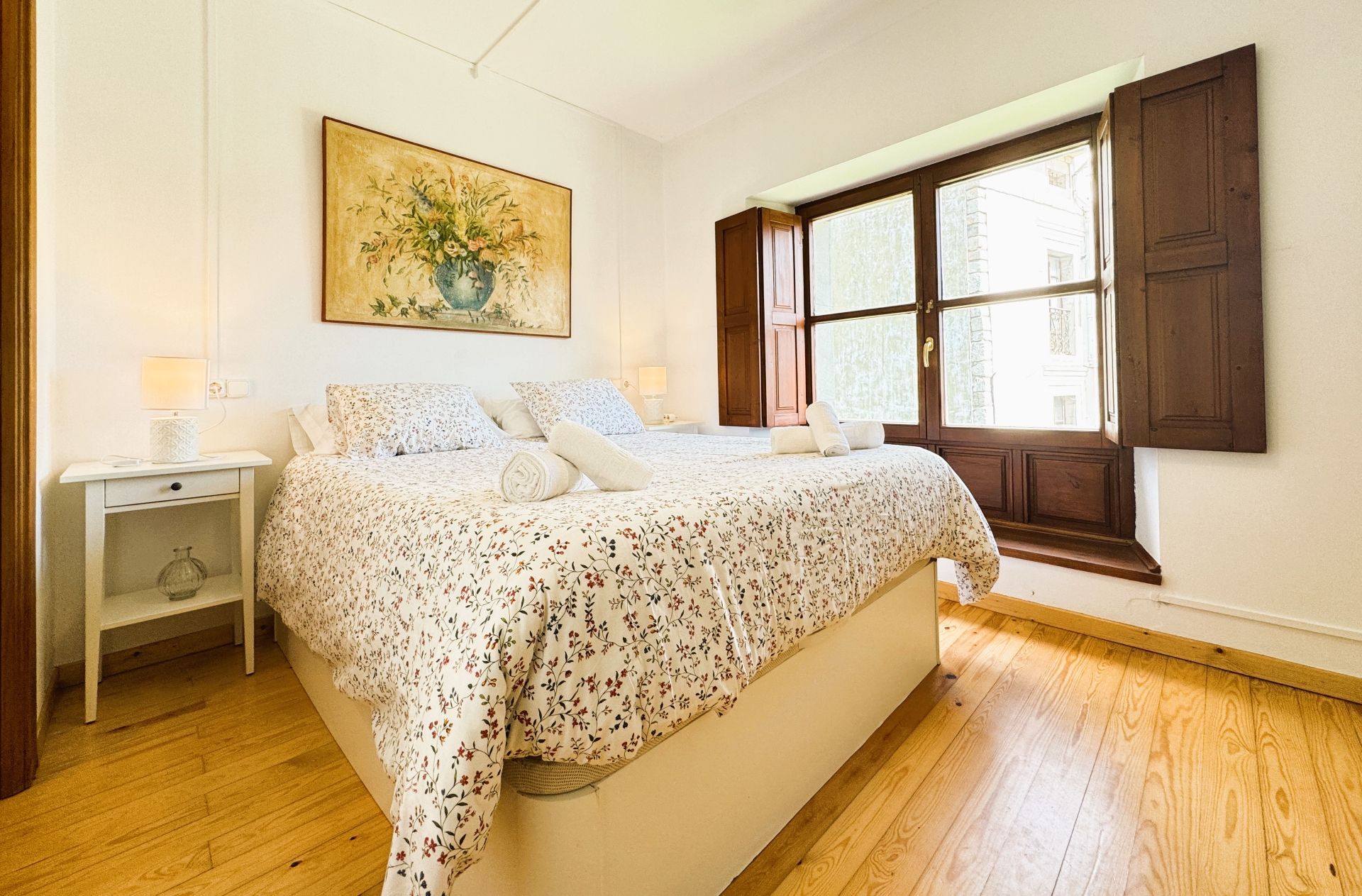 En la primera planta se localizan las tres habitaciones (una matrimonial y dos dobles), dos cuartos de baño con ducha y la cocina perfectamente equipada. Dos de las habitaciones tienen salida a la galería de madera y gozan de espectaculares vistas a la Sierra del Cuera de Llanes. El otro dormitorio tiene cuarto de baño conducha propio.