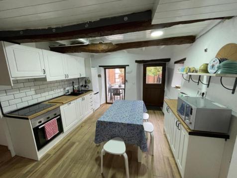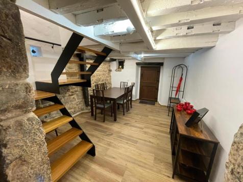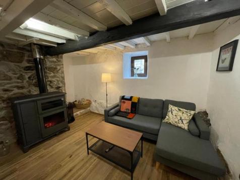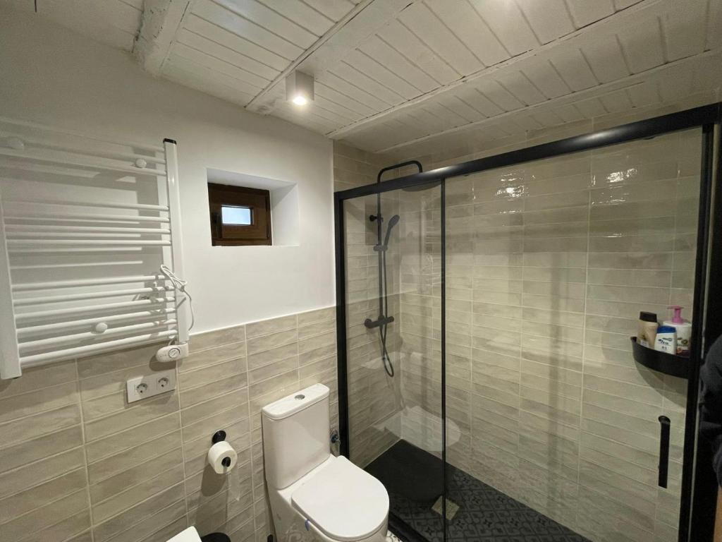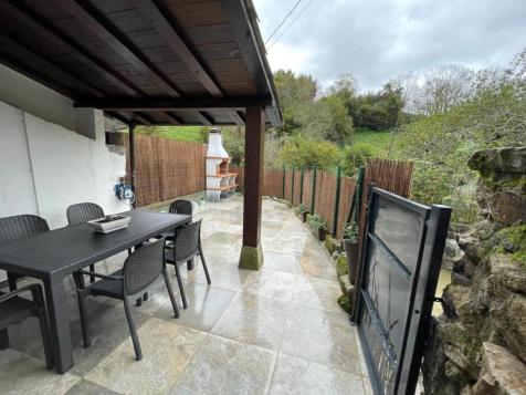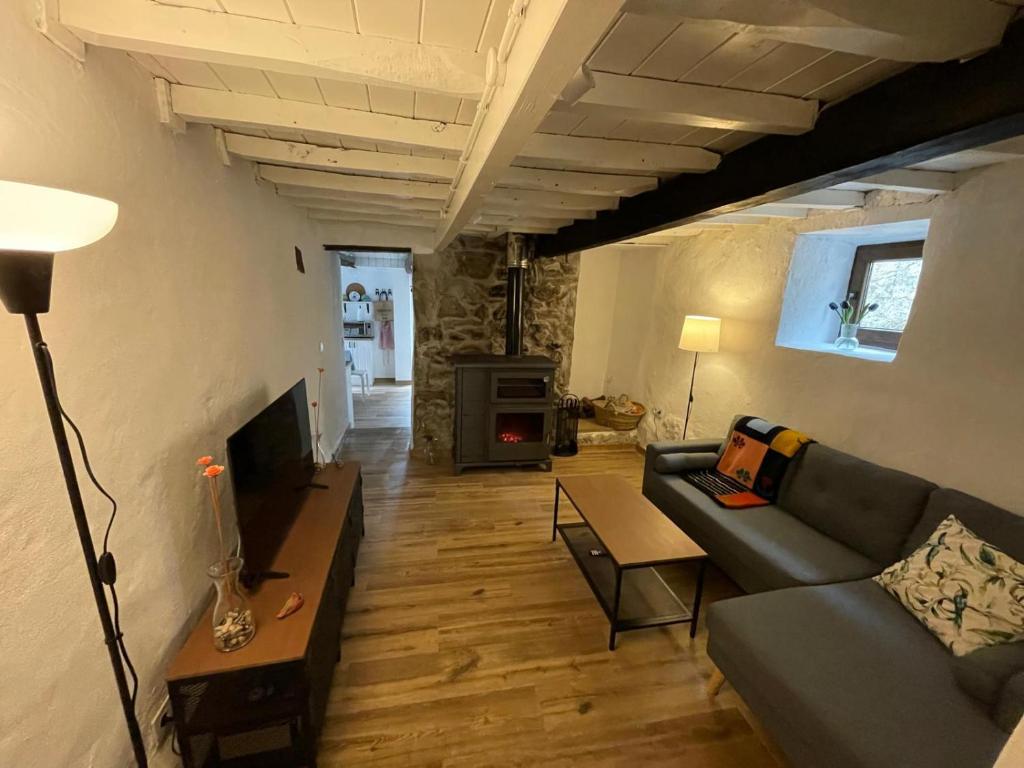La casa tiene, en el piso de arriba, dos dormitorios con cama de 150cm, otro con dos camas nido de 90 cm, una sala de estar con sofá cama de 135cm y un baño completo con ducha. En el piso de abajo está el comedor, salón, baño completo con ducha y cocina con acceso directo al patio con porche y barbacoa. Tiene Wifi, TV en las dos plantas, calefacción, lavadora, lavavajillas, cafetera italiana y de cápsulas, hervidor de agua y todo tipo de utensilios y menaje de cocina. Placa de inducción, horno y microondas. La zona de la casa es silenciosa, tranquila, está rodeada de verde. Lo único que se escucha son los sonidos de los animales cercanos: ovejas... Un lugar para desconectar del ruido y para despertarse llenando la vista.