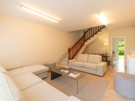 La casa, recién decorada, tiene dos plantas y cuenta con un jardín privado que rodea la casa, permitiendo a los huéspedes disfrutar tanto de la vista costera en la parte delantera como de las montañas en la parte trasera. La finca también cuenta con aparcamiento y aceptan mascotas.
