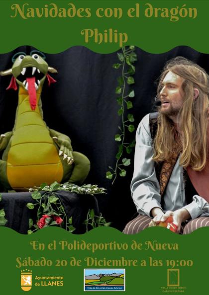 SÁBADO 20 a las 19:00; CUENTACUENTOS; “Navidades con el dragón Phillip” de Producciones Viesqueswood. (En el polideportivo de Nueva)